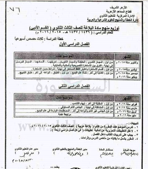 ننشر.. المناهج الجديدة للغة العربية للصف الثالت الثانوى بالمعاهد الأزهرية