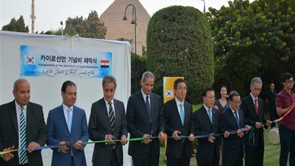 وقام كل من وزير التربية والتعليم والتعليم الفنى، ووزير الثقافة وسفير كوريا الجنوبية فى القاهرة بإزاحة الستار عن النصب التذكارى لإعلان القاهرة، وقد كان يحمل النصب التذكارى عبارة " مصر أم الدنيا باللغة العربية.