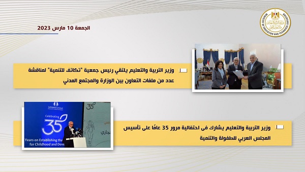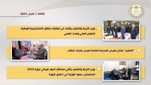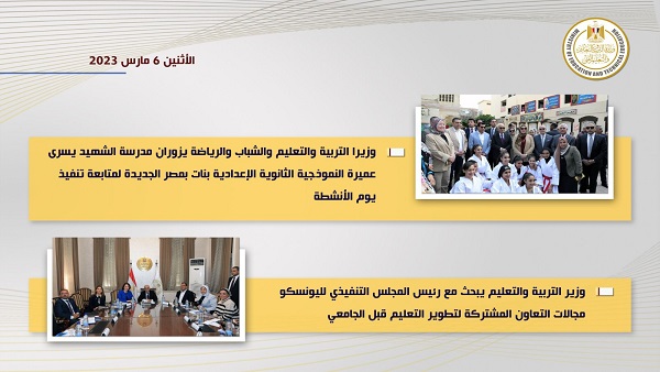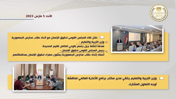تنشر "السبورة" التقرير الأسبوعي لوزارة التربية والتعليم والتعليم الفني (السبت 4 مارس – الجمعة 10 مارس) ٢٠٢٣ والذي تضمن التالي: