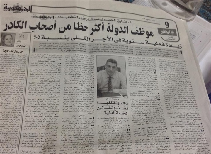 قال الدكتور طارق الحصري مستشار وزير التخطيط والإصلاح الإداري، أن موظف الدولة أكثر حظا من أصحاب الكادر وذلك نسبة الزيادة الفعلية في الأجر الكلي 5% سنويا.