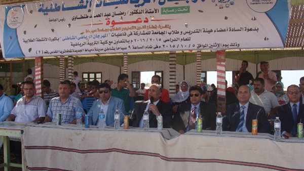 افتتح ظهرأمس الاثنين 5/10/2015 رمضان الطنطاوي – رئيس الجامعة مهرجان الألعاب الشاطئية، والذي يقام ضمن فاعليات مهرجان بداية العام الجامعي 2015/2016، بمشاركة كافة كليات الجامعة في مختلف الألعاب، والمقام بشاطئ مدينة دمياط الجديدة، وتحت إشراف عميد كلية التربية الرياضية والسادة وكلاء الكلية.