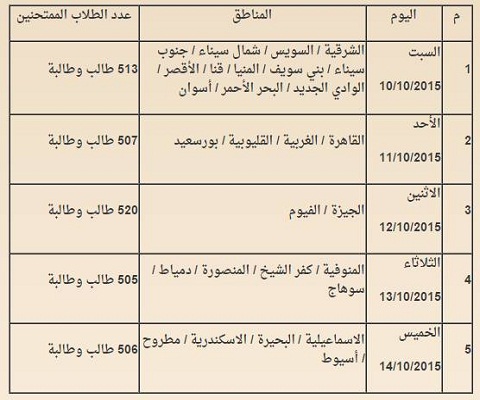 الخميس 14/10/2015 (الاسماعيلية / البحيرة / الاسكندرية / مطروح / أسيوط)