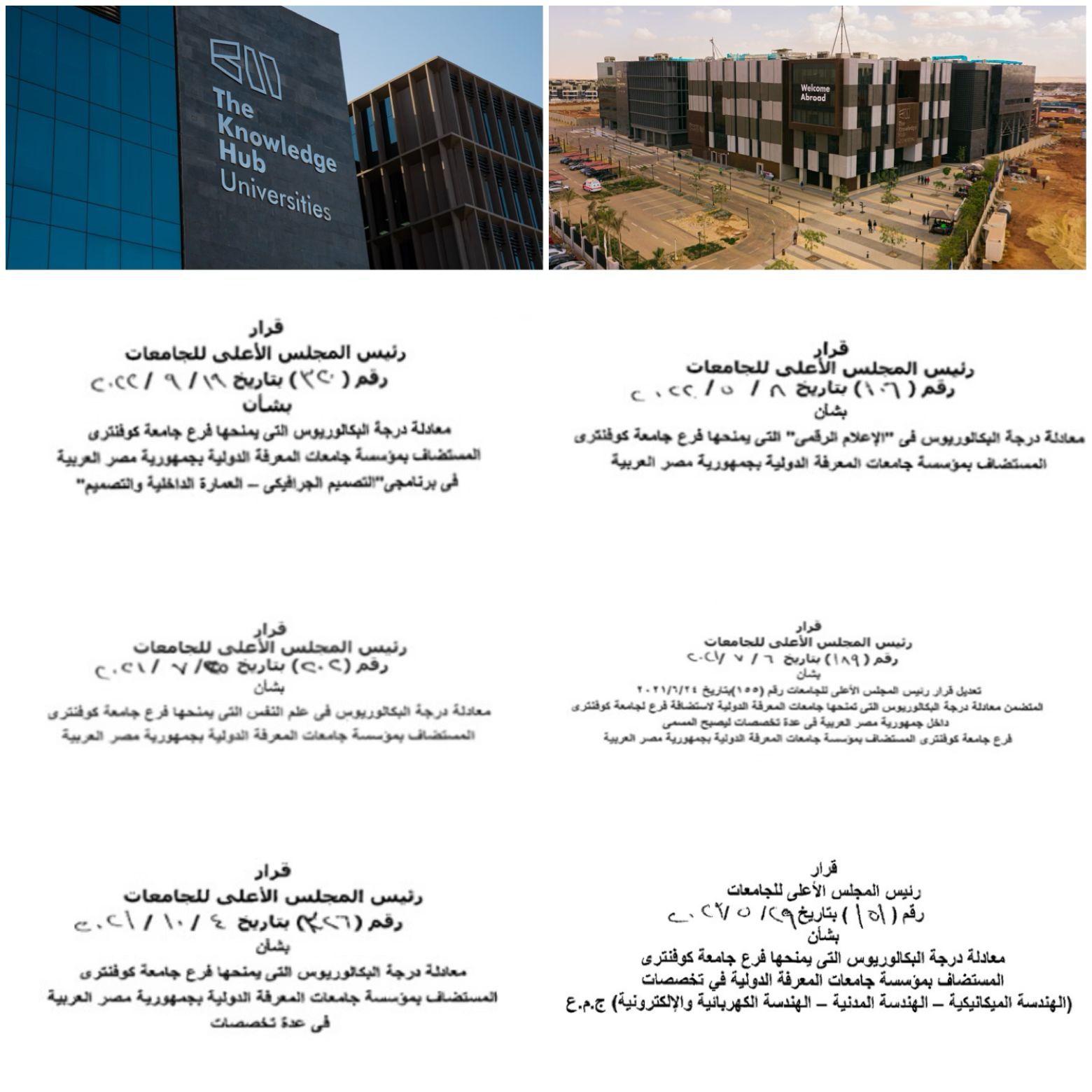 وأكدت مؤسسة جامعات المعرفة الدولية، أن صدور هذه القرارات جاءت حرصًا من فرع جامعة كوفنتري المستضاف بمؤسسة جامعات المعرفة الدولية على نجاح تجربة الفروع الأجنبية وعلى تقديم كافة التسهيلات والخدمات للطلاب، حيث بادرت الإدارة قبل سنتين من التخرج بالتنسيق مع المجلس الأعلى للجامعات لمعادلة شهادات التخرج مما يسهل للطلاب المقيدين الحصول على شهادة معادلة داخل جمهورية مصر العربية والقيد فى النقابات ذات الصلة وكذا تقديم مستندات التجنيد بالنسبة للطلاب الذكور من خلال شهادة جامعية معتمدة داخل جمهورية مصر العربية.