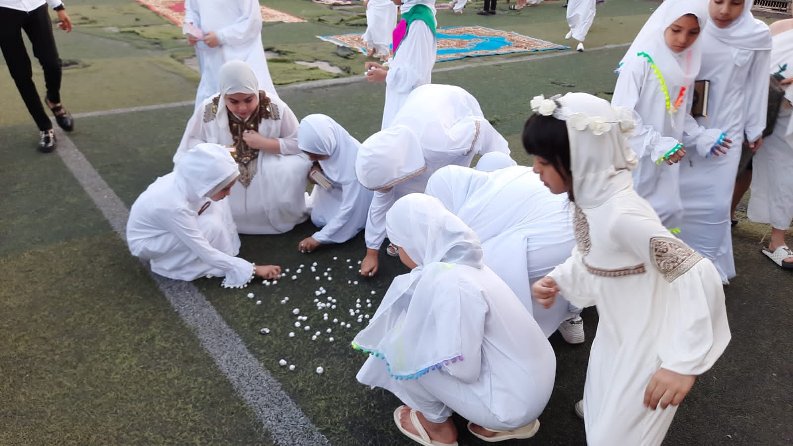 وتضمنت الفعالية أداء الطلاب محاكاة لمناسك الحج والعمرة ومنها كيفية الإحرام، والطواف، السعي، والتعريف بيوم التروية بمنطقة "منى"، الوقوف بعرفة، والمبيت بمزدلفة ورمي جمرات العقبة، وصولا إلى النحر، وسط إشادة وإعجاب كبير من الحضور بنادي المعارف الرياضي.