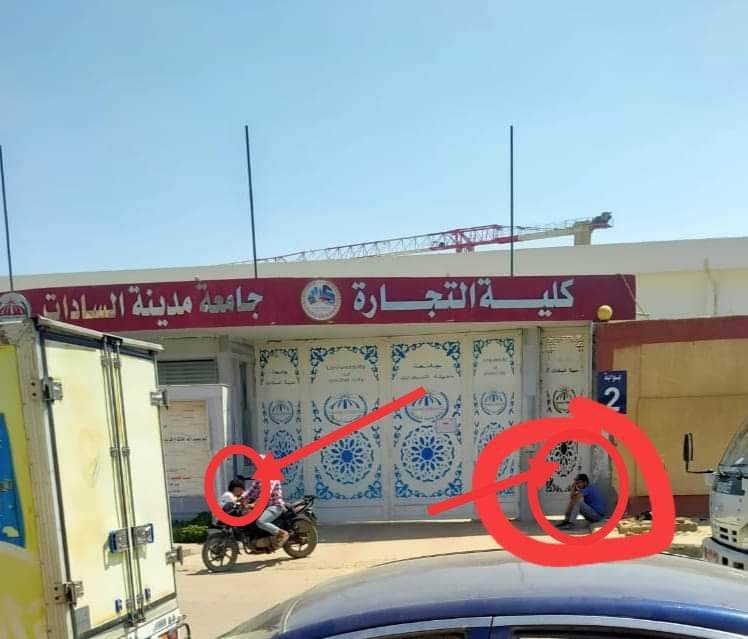 إفترش الطلاب والطالبات الأرض املا منهم في دخول الامتحان الاخير حيث تم غلق بوابة كلية التجارة جامعة السادات في تمام الساعة العاشرة