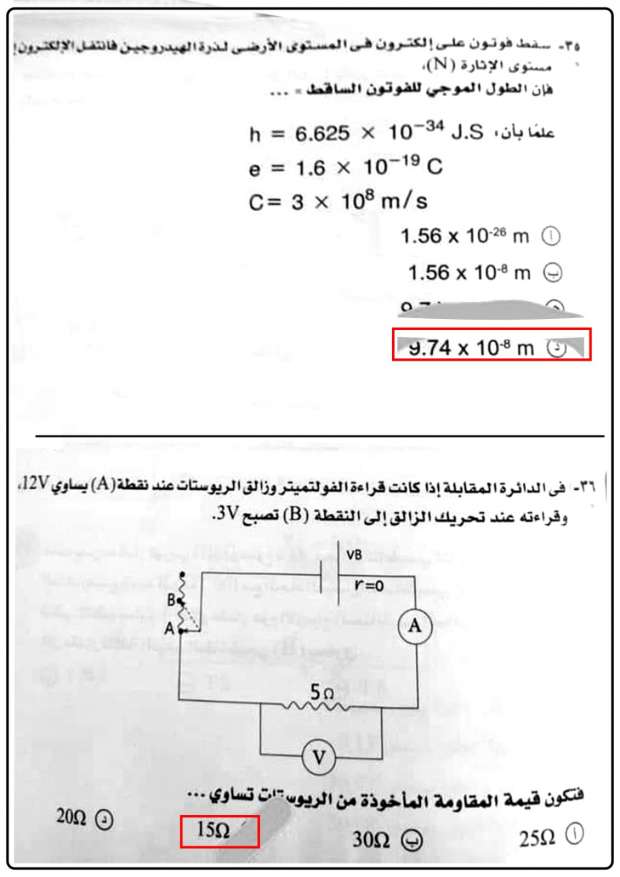 الإجابة النموذجية لامتحان الفيزياء للثانوية العامة 2023