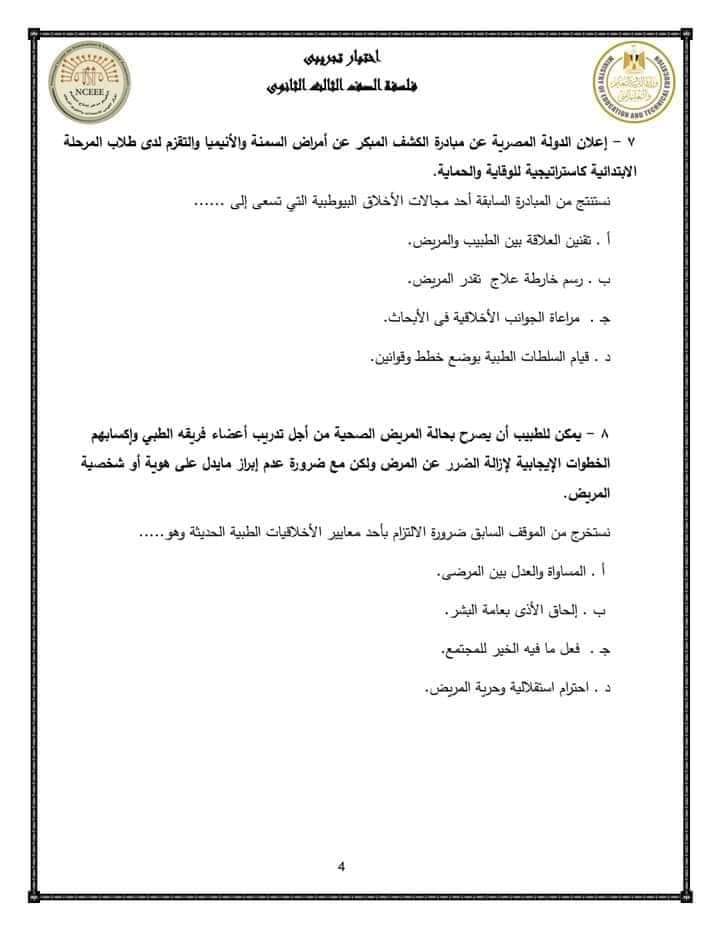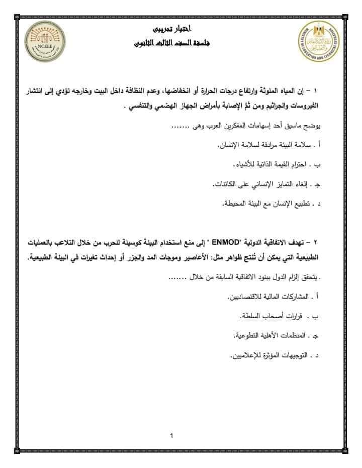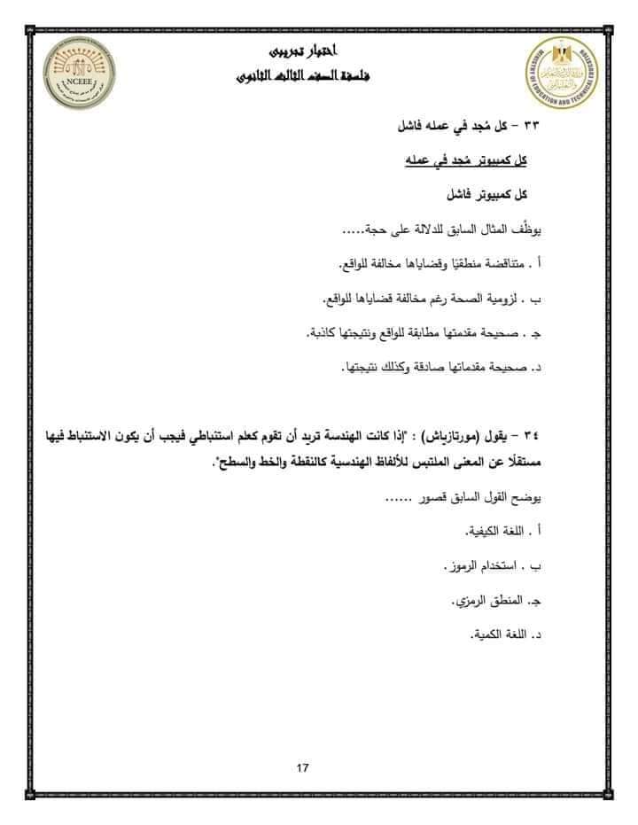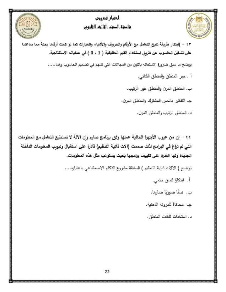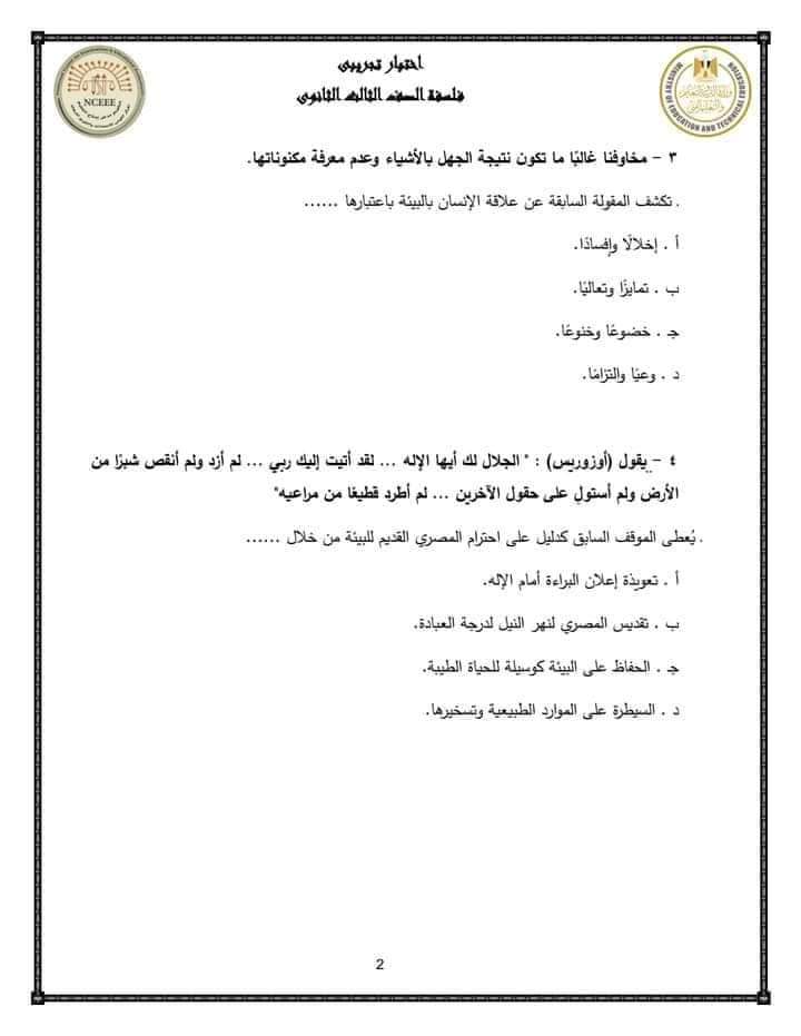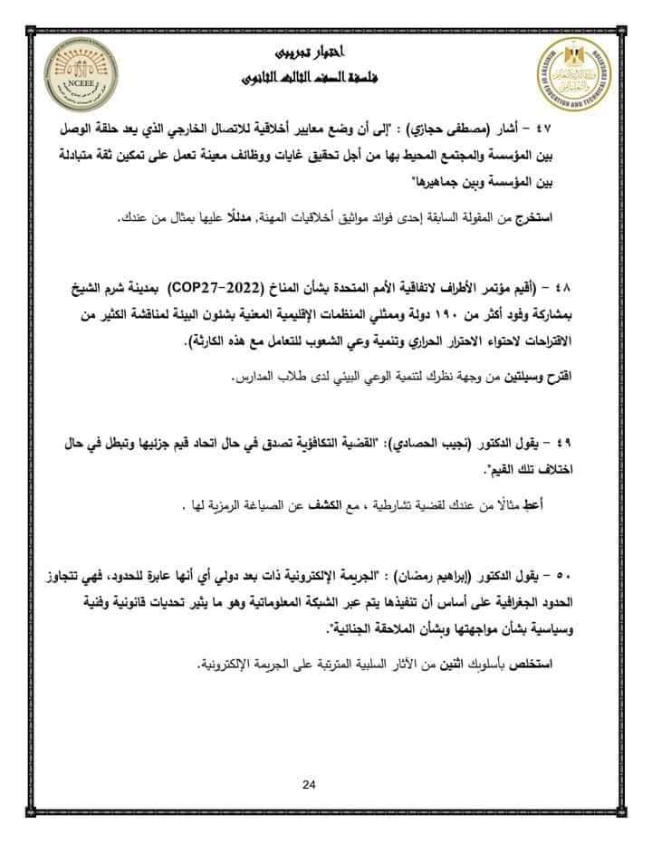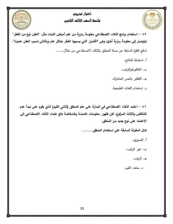 - التربية والتعليم تنشر النموذج الاسترشادي فى مادة "الفلسفة" للصف الثالث الثانوى بالإجابات