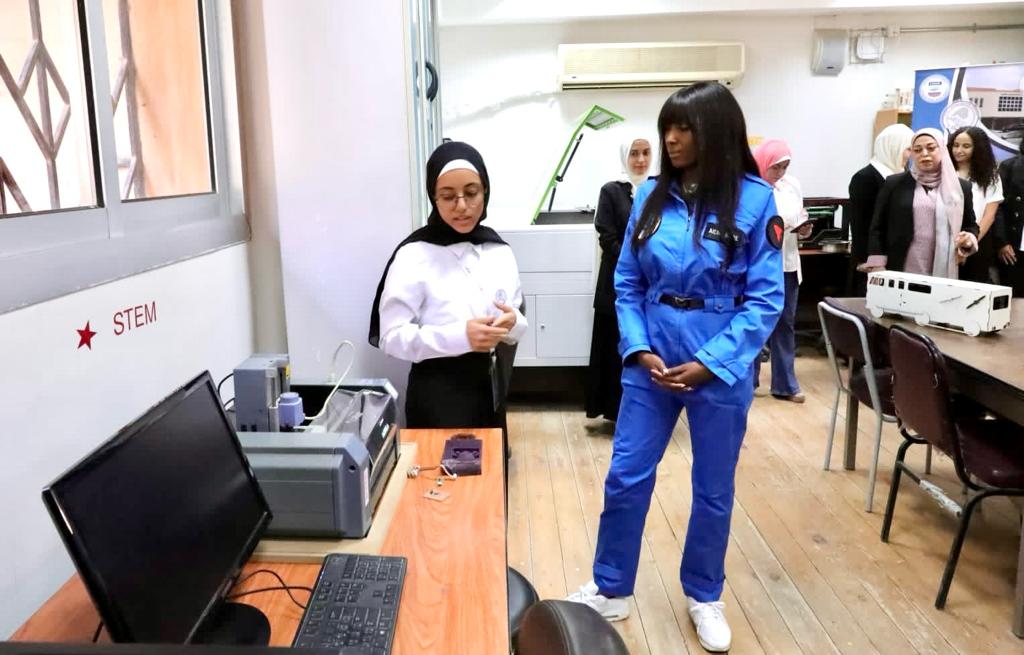 استقبلت مدرسة المتفوقات في العلوم والتكنولوجيا STEM بالمعادي رائدة الفضاء الأمريكية "عائشة بو"، وذلك خلال زيارتها لمصر؛ للتعرف على نظام الدراسة بالمدرسة، ومشاركة تجربتها المهنية مع الطالبات.