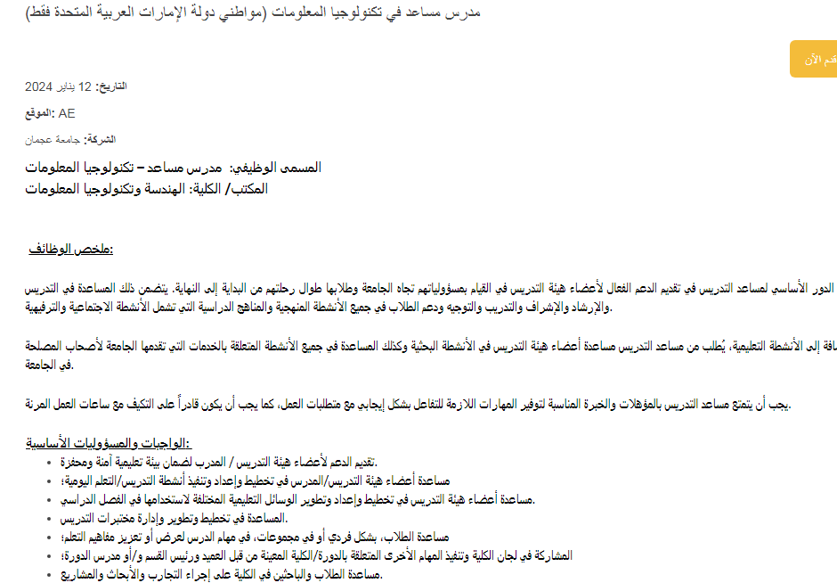 وظائف جامعه.. جامعة عجمان تعلن عن وظائف جديدة لأعضاء هيئة التدريس