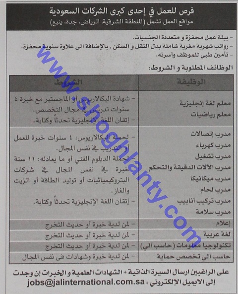 أعلنت إحدي الشركات بالمملكة العربية السعودية عن حاجتها للتعاقد مع معلمين في جميع المواد وذلك وفقا للشروط التالية: