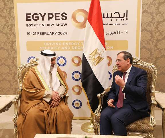 إيجبس 2024.. كما التقى المهندس طارق الملا وزير البترول والثروة المعدنية مع مصبح الكعبي الرئيس التنفيذي لدائرة الحلول منخفضة الكربون والنمو الدولي في "أدنوك" الإماراتية. وخلال اللقاء تم استعراض الفرص الاستثمارية المتاحة فى مجالات البترول المختلفة، حيث ابدى الكعبى تطلع الشركة للعمل فى مصر فى العديد من المشروعات البترولية سواء انشطة البحث والاستكشاف وإنتاج البترول والغاز او مشروعات الطاقة الجديدة والمتجددة، لافتًا إلى ان مصر سوق كبير مستقر وجاذب للاستثمارات فى مختلف انشطة البترول والطاقة.