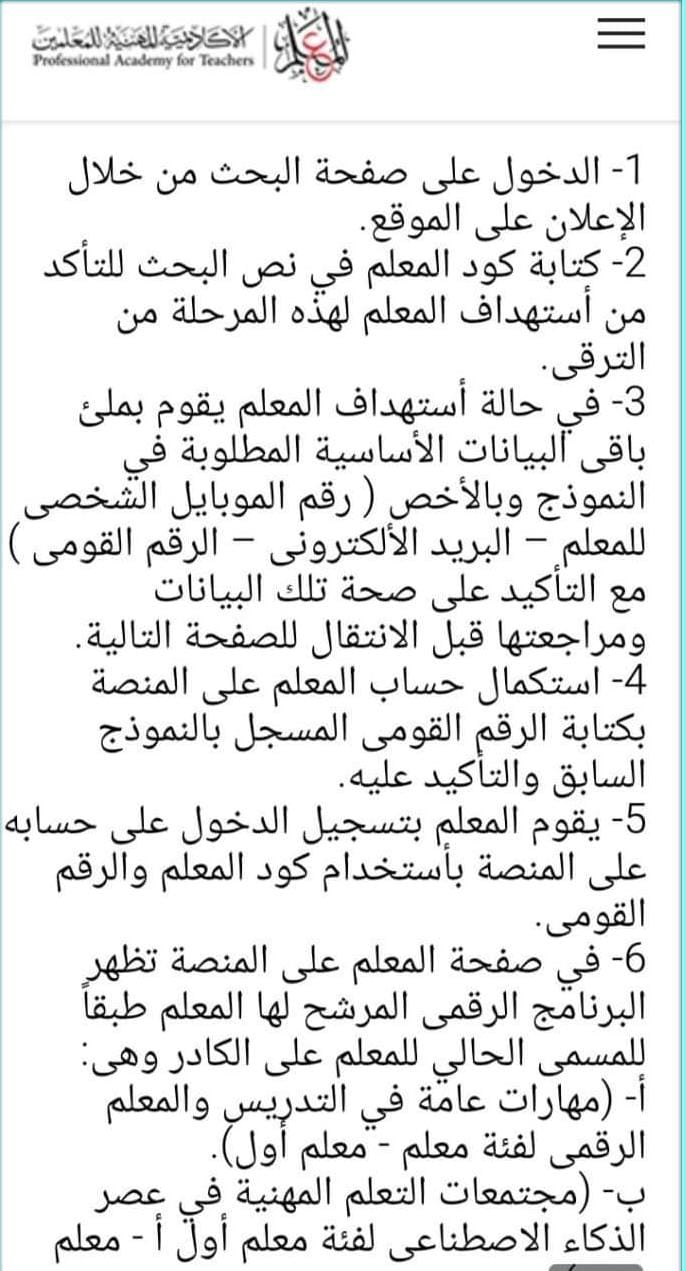 1- المعلم المستهدف لـ الترقي فقط هيقدر يدخل منصة الأكاديمية