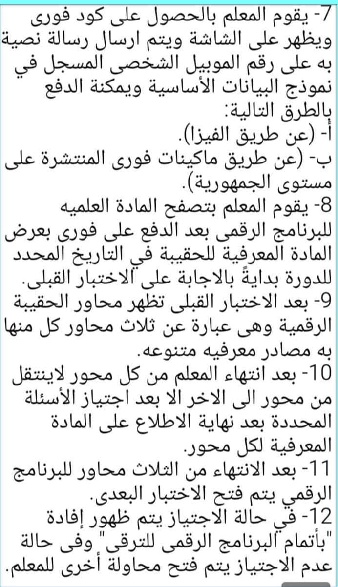 ونظرا للاعداد الكبيرة، بشأن تدريب المعلمين المرشحين لـ الترقي، والتى تضمها هذه الدفعة فقد قررت وزارة التربية والتعليم والتعليم الفني، تدريب المعلمين المرشحين لـ الترقي والمعلمات من خلال المنزل، والتواصل على الموقع الالكتروني من أجل التدريب، وللدخول على موقع تدريب المعلمين المرشحين لـ لترقي اضغط هنااااااااااااا .