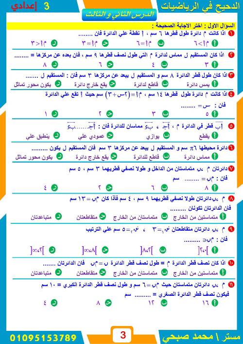 - مراجعات نهائيه الصف الثالث الإعدادي