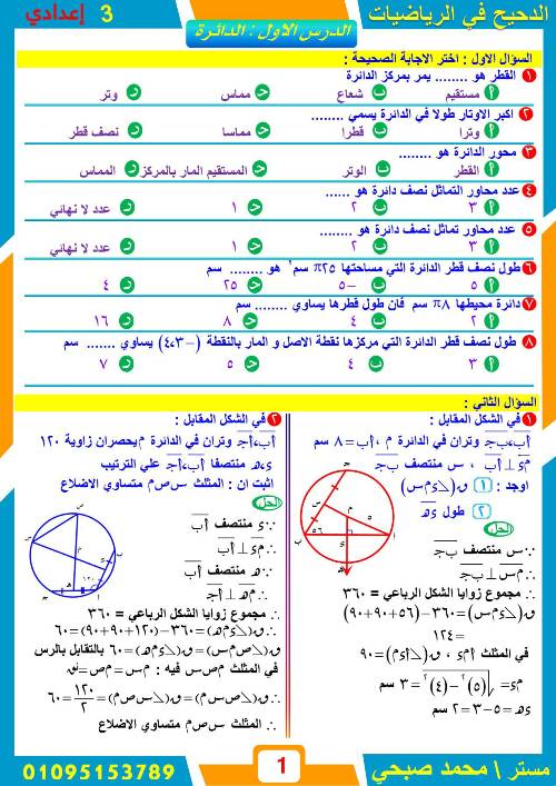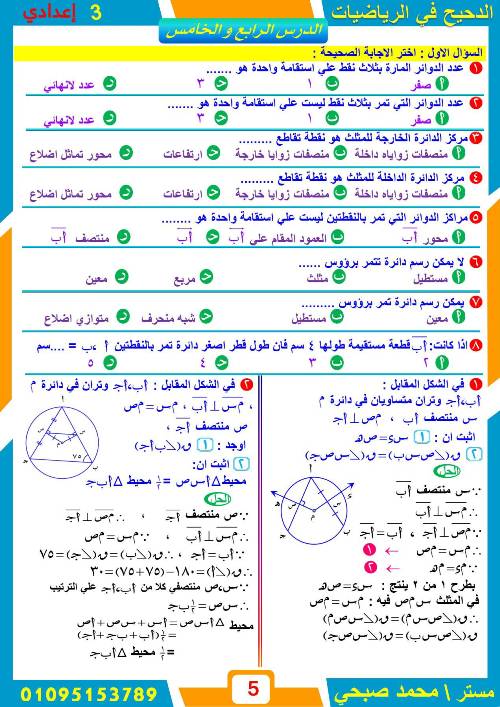 - مراجعات نهائيه رياضيات الشهادة الإعدادية
