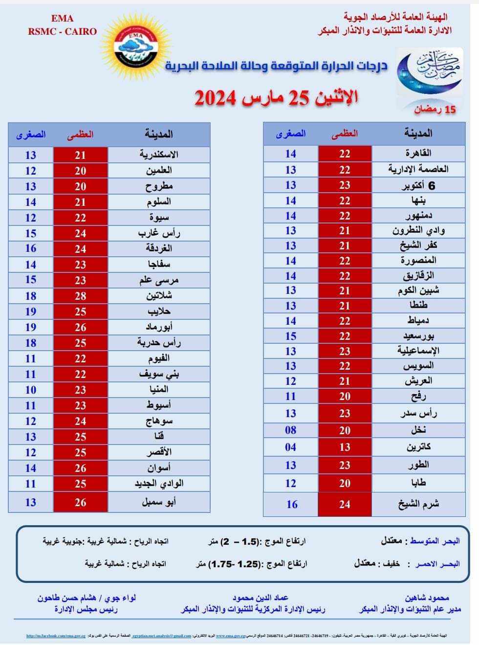 - سوهاج العظمى 24 درجة والصغرى 12.