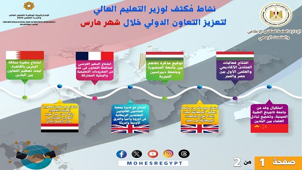 أخبار التعليم | نشاط دولى مكثف لـ وزير التعليم العالي خلال شهر مارس