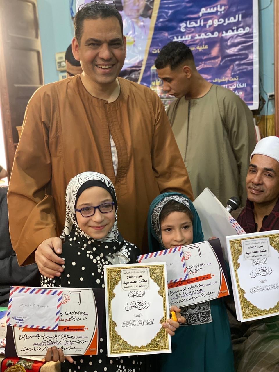 تكريم ٢٠٥ متسابقا من حفظة القرآن الكريم فى مسابقة الحاج معتمد بقرية بنى محمديات محافظة أسيوط
