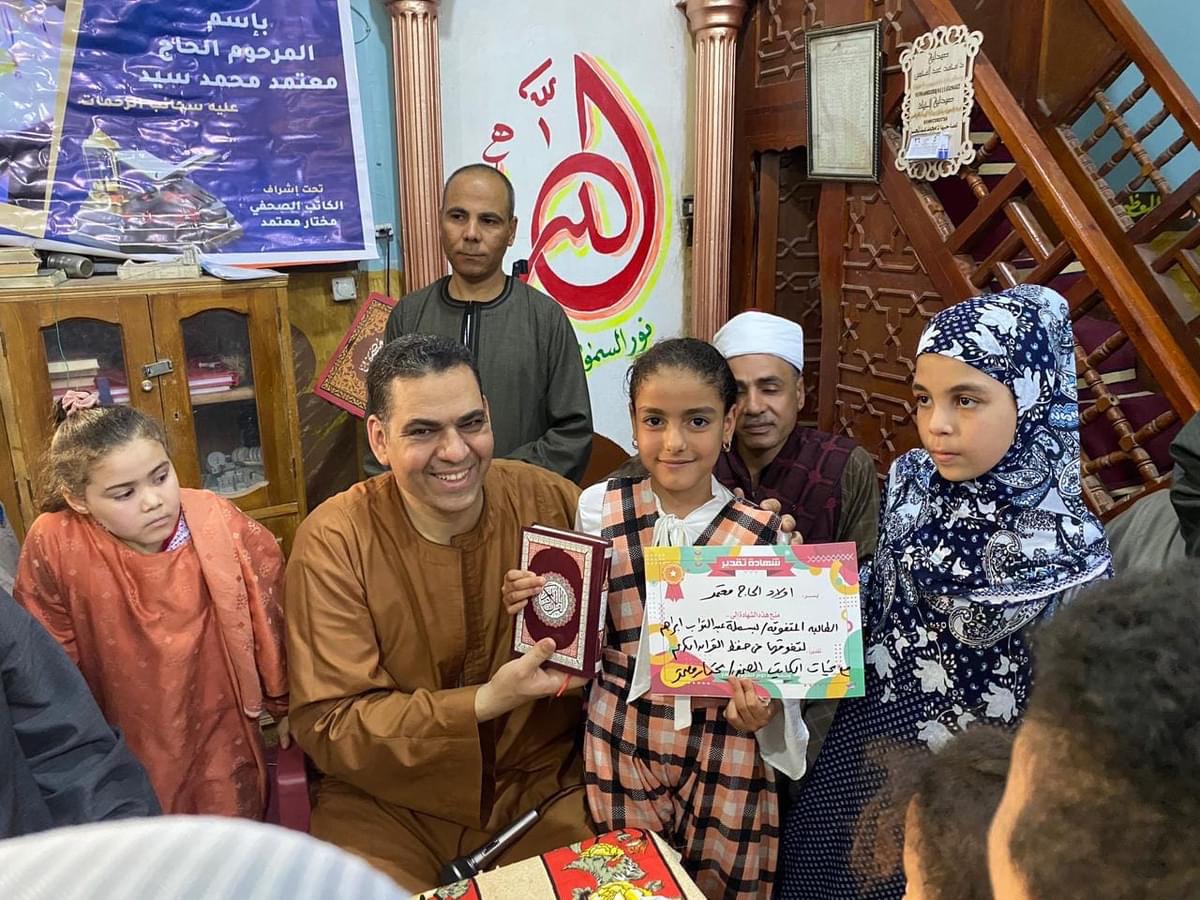 وتابع مختار معتمد نائب رئيس تحرير الجمهورية لذا قررنا جبر خاطر كل طفل اوطفلة شاركوا في المسابقة وتكريمه حتى ولو لم يكن يحفظ الا الفاتحة..مبروك لكل من جاء الينا من كل حدب وصوب من قريتنا بنى محمديات العريقة التى تزخر بالنشء الصالح والاصل الثابت.