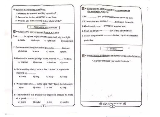 - حل امتحان اللغة الإنجليزية اعدادية الجيزة