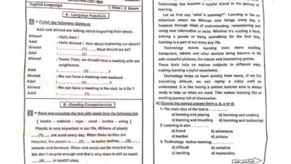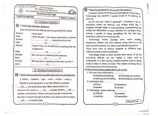 يقدم موقع السبورة خدمة مميزة لطلاب وطالبات الشهادة الإعدادية، من خلال حل امتحان اللغة الإنجليزي، الفصل الدراسي الثاني، والذي أدى فيه الطلاب امتحان آخر العام منذ قليل بمديرية التربية والتعليم بالجيزة.