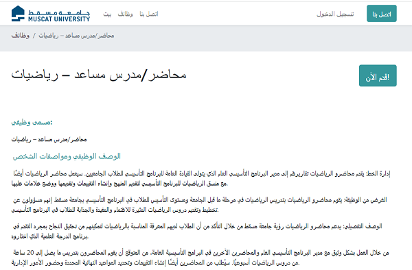 للتقديم في وظيفة جامعه مسقط اضغط هنا قدم الآن!