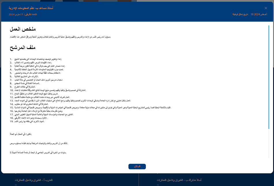 وظيفة جامعه .. ملف المرشح