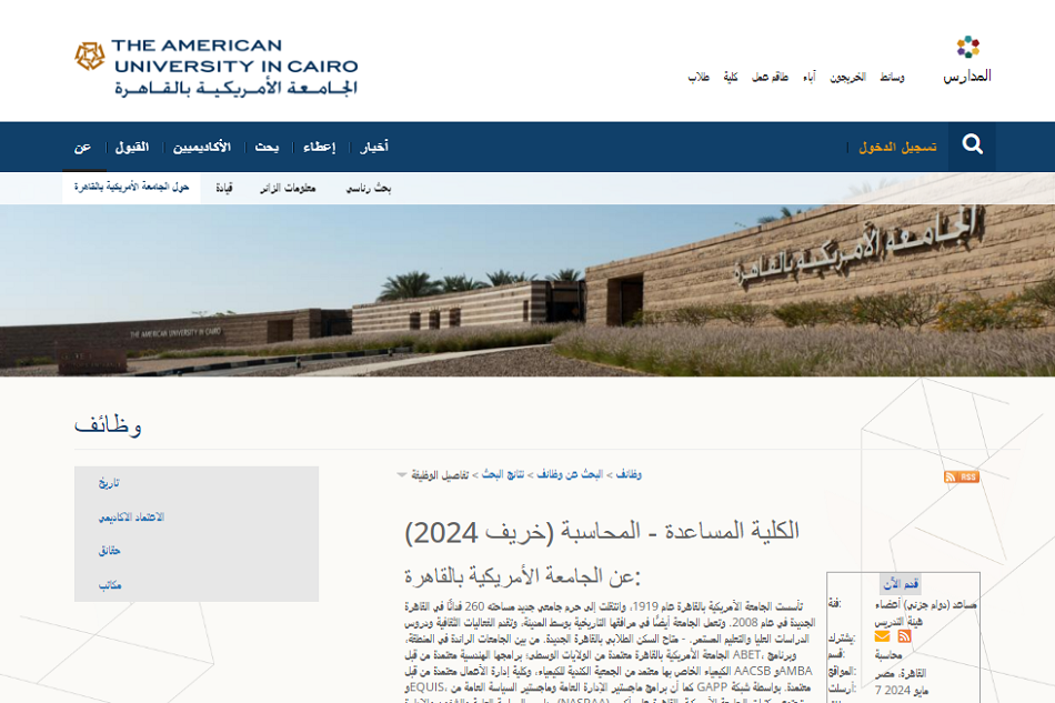 عنوان URL: www.aucegypt.edu/about/jobs/faculty-vacaency