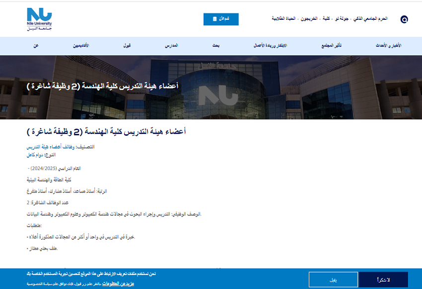 لمطالعة نص إعلان وظيفة جامعة النيل الأهلية والتقديم عبر الموقع الرسمي للجامعة اضغط هنا