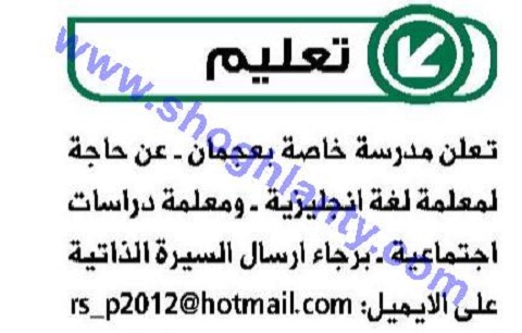 تعلن مدرسة خاصة بدولة الامارات العربية المتحدة عن حاجتها للتعاقد مع معلمين ومعلمات وذلك وفقا للشروط التالية: