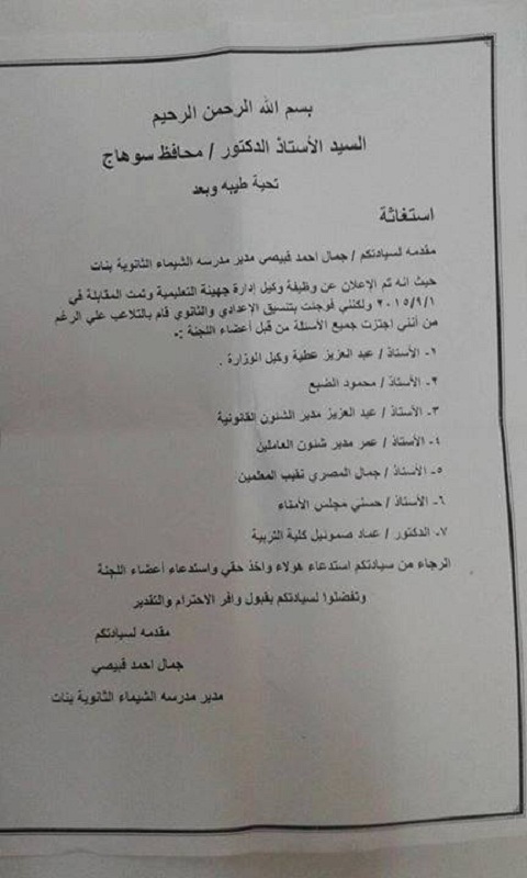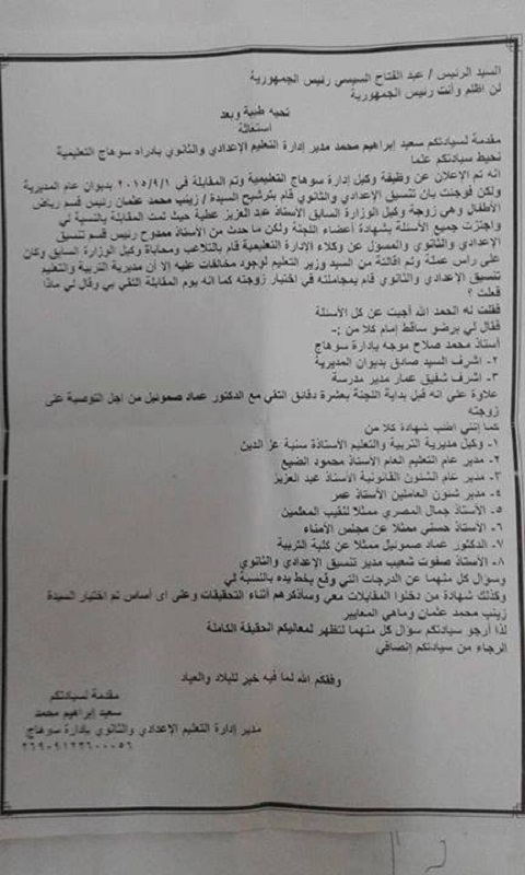 الامر تدخل وزير التربية والتعليم الدكتور الهلالى الشربينى، ورئيس مجلس الوزراء المهندس شريف اسماعيل، ولهذا نتمنى تحقيق مبدأ العدالة من أجل أعطاء كل ذى حق حقة .