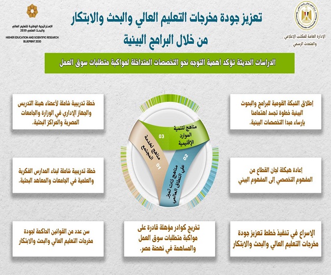 وأشار الوزير إلى الخطوات التي تم اتخاذها في هذا الصدد، ومنها التركيز على البرامج البينية التي تعزز جودة التعليم العالي والبحث والابتكار في مصر. تأتي هذه المبادرة ضمن إطار تنفيذ الاستراتيجية الوطنية للتعليم العالي والبحث العلمي 2030، التي تركز على التخصصات المتداخلة والبرامج البينية، والتي تجمع بين تخصصات مختلفة مثل العلوم الإنسانية والطبيعية والتكنولوجية. الهدف من هذه البرامج هو إعداد خريجين قادرين على التكيف مع متطلبات سوق العمل الحديثة.