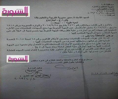 - اذا كان هؤلاء السيدات يخضعن لقانون الخدمة المدنية فأن مرتباتهن وملحقاتها تصرف من الجهات المنتدبات اليها.