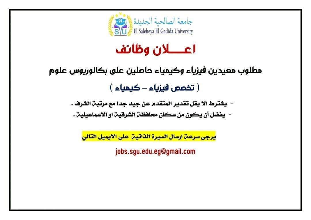 معيدين تخصصات فيزياء وكيمياء، من حاملي بكالوريوس العلوم