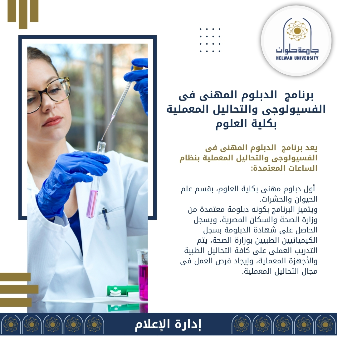 تعرف على برنامج الدبلوم المهنى فى الفسيولوجى والتحاليل المعملية بكلية العلوم جامعة حلوان