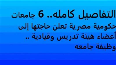التفاصيل كامله.. 6 جامعات حكومية مصرية تعلن حاجتها إلى أعضاء هيئة تدريس وقيادية.. وظيفة جامعه
