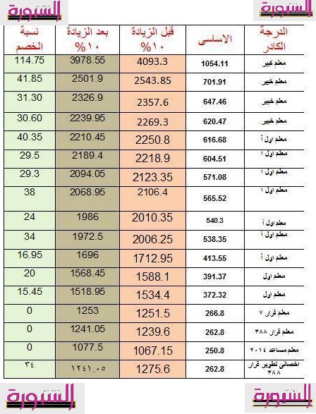 تداول عدد من المعلمين على صفحاتهم على مواقع التواصل الاجتماعى "فيس بوك" ورقة بالمرتبات بعد الخصومات وبعد زيادة علاوة الـ"10%"، وجاءت معظم التعليقات بعبارة واحدة وهى: