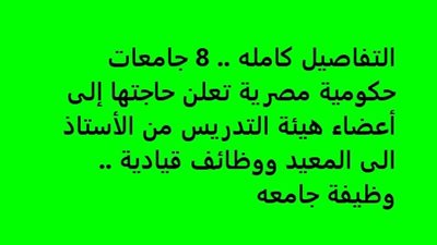 التفاصيل كامله.. 8 جامعات حكومية مصرية تعلن حاجتها إلى أعضاء هيئة التدريس.. وظيفة جامعه