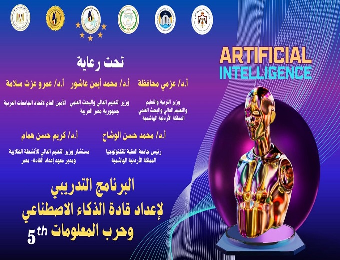 تحت رعاية الدكتور أيمن عاشور، وزير التعليم العالي والبحث العلمي في مصر، والدكتور عزمي محافظة، وزير التربية والتعليم والتعليم العالي والبحث العلمي في الأردن، ينظم معهد إعداد القادة بالتعاون مع اتحاد الجامعات العربية وجامعة العقبة للتكنولوجيا في المملكة الأردنية الهاشمية، البرنامج التدريبي الخامس بعنوان: "إعداد قادة الذكاء الاصطناعي وحرب المعلومات"، وذلك خلال الفترة من 8 إلى 12 سبتمبر الجاري، بمشاركة 16 دولة عربية، وهي: مصر، الإمارات، قطر، البحرين، سلطنة عمان، العراق، جزر القمر، الصومال، المغرب، تونس، لبنان، سوريا، الأردن، فلسطين، ليبيا، واليمن.