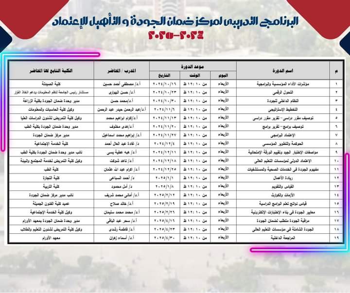 مركز ضمان الجوده والتأهيل للاعتماد في جامعة أسيوط يعلن عن بدء البرنامج التدريبي