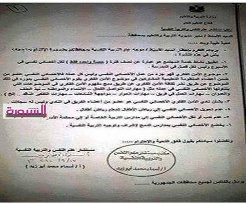 ارسل مستشار علم النفس والتربية النفسية فاكسا الى المديريات التعليمية يشمل مجموعة من التعليمات والتوضيحات تخص الاخصائي النفسي حيث طالب موجهي العموم التربية النفسية
