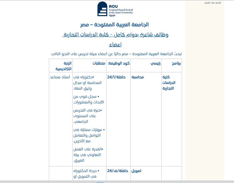 - أخبار وظائف الجامعة العربية المفتوحة اليوم