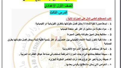 مراجعات نهائية.. أسئلة تقييم العلوم في الأسبوع الثالث لـ الصف الأول الإعدادي