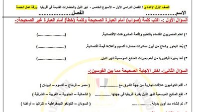 مراجعات نهائية.. أسئلة تقييم الدراسات الاجتماعية الأسبوعين الرابع والخامس الصف الأول الإعدادي