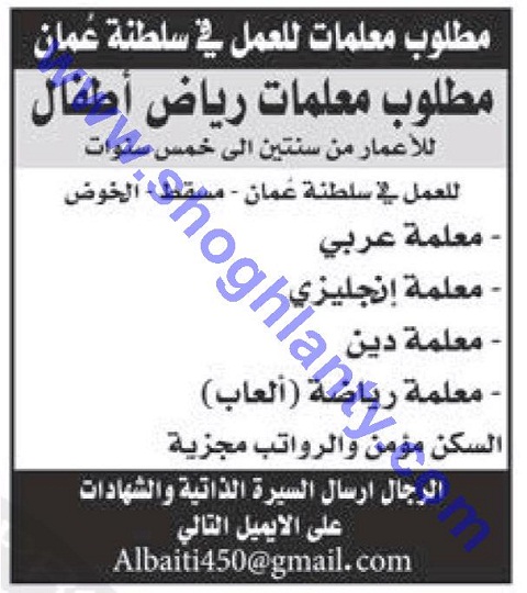 تعلن مدرسة خاصة في سلطنة عمان عن حاجتها للتعاقد مع معلمين وذلك في التخصصات التالية: