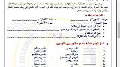 مراجعات نهائية.. أسئلة تقييم الاسبوع السابع في اللغة العربية الصف الرابع الابتدائي