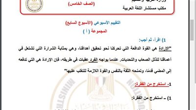 مراجعات نهائية.. أسئلة تقييم الاسبوع السابع في اللغة العربية الصف الخامس الابتدائي