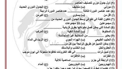 مراجعات نهائية.. أسئلة تقييم الساينس Science الأسبوع الثاني لـ الصف الأول الإعدادي
