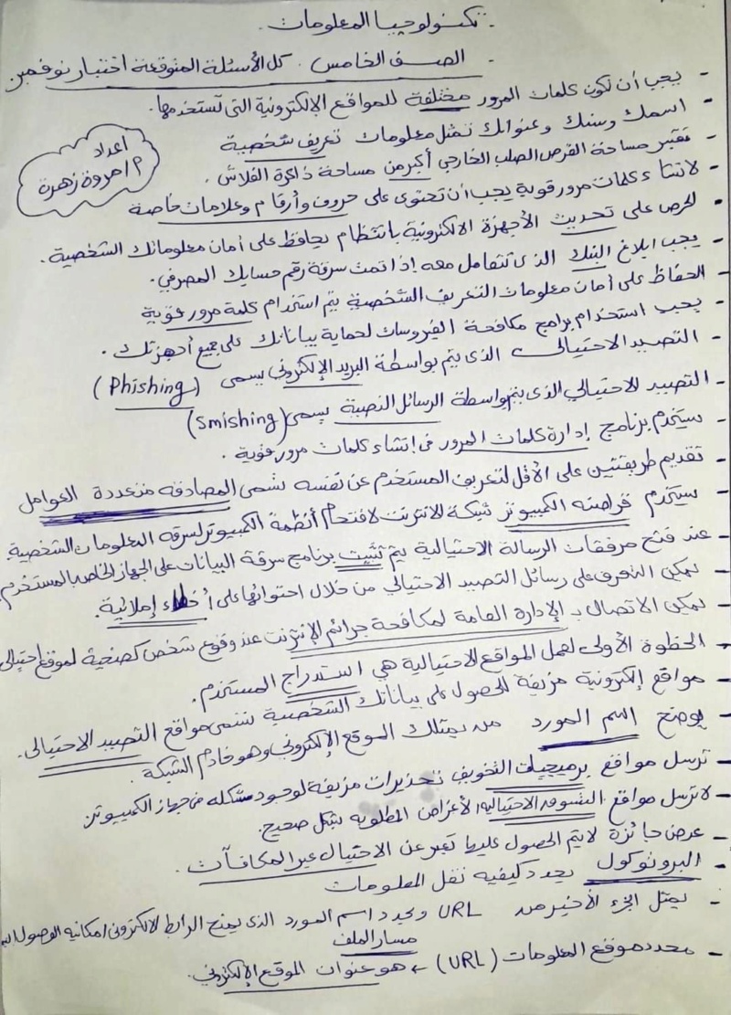 - مراجعات نهائيه امتحان الكمبيوتر خامسة ابتدائي