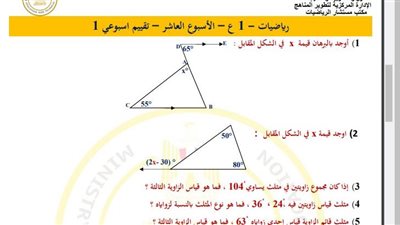 مراجعات نهائية.. أسئلة تقييم الأسبوع العاشر الرياضيات لـ الصف الثاني الإعدادي